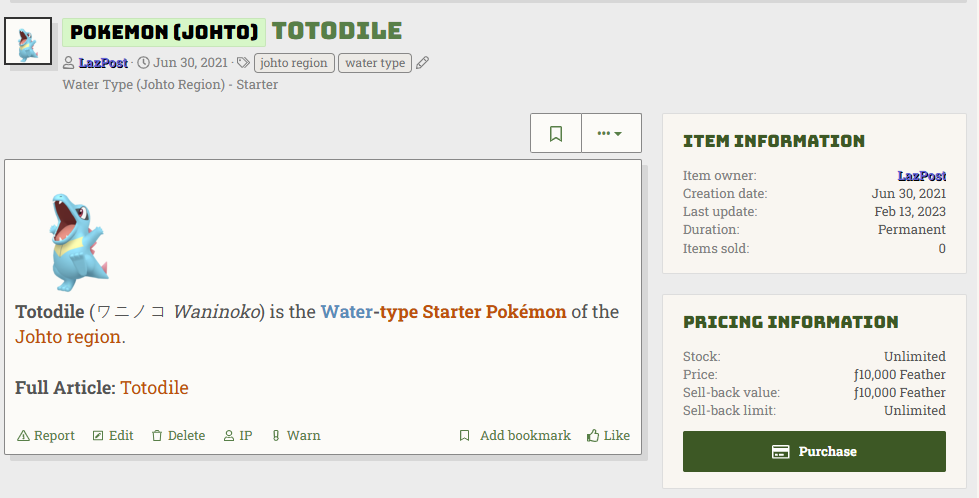 The Shop part of the forum provides the currency and economy system.